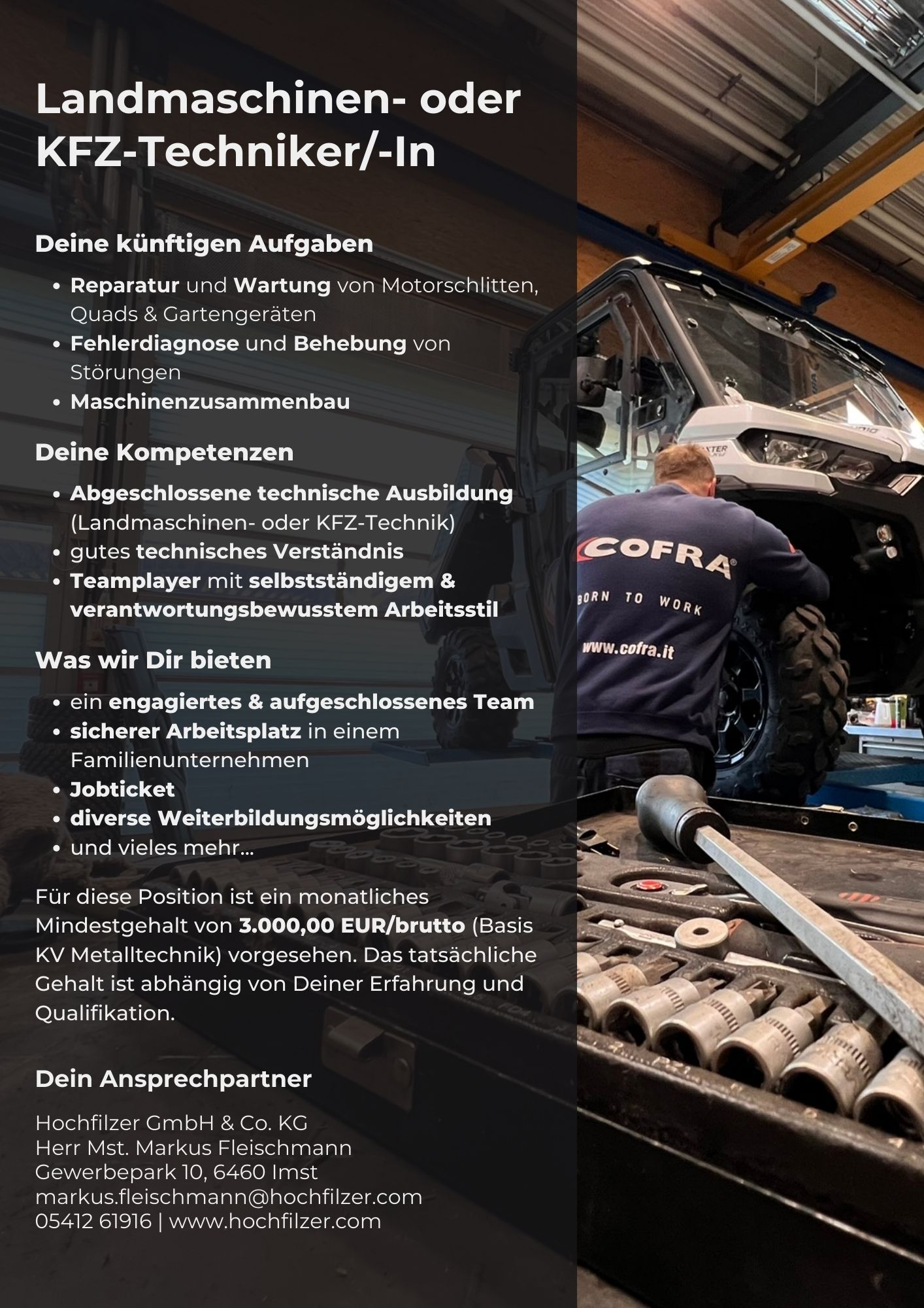 Für unsere Filiale in Imst suchen wir nun Verstärkung für unser Werkstatt-Team. Du bist verlässlich, kompetent, zielorientiert und ein echter Teamplayer? Dann suchen wir genau dich als